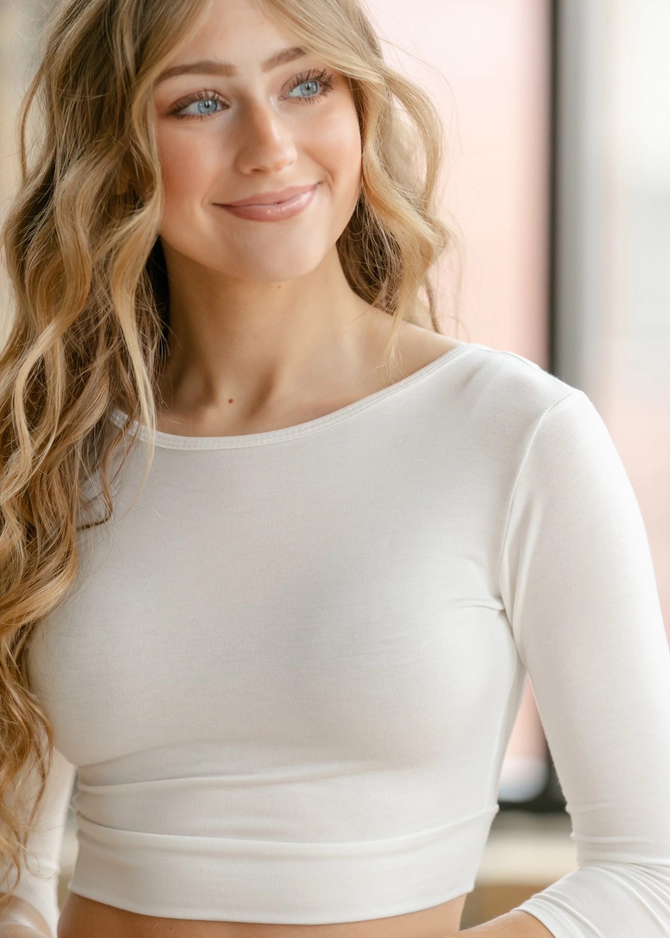 The Crewneck 3/4 Sleeve Halftee is the perfect year-round layering piece! Designed with a modest crewneck, 3/4 sleeves, and a cropped length for no added bulk under outfits. It is crafted from a stretchy rayon and spandex blend for all-day comfort. This is sure to be your new favorite under dresses or sweater vests all season long!