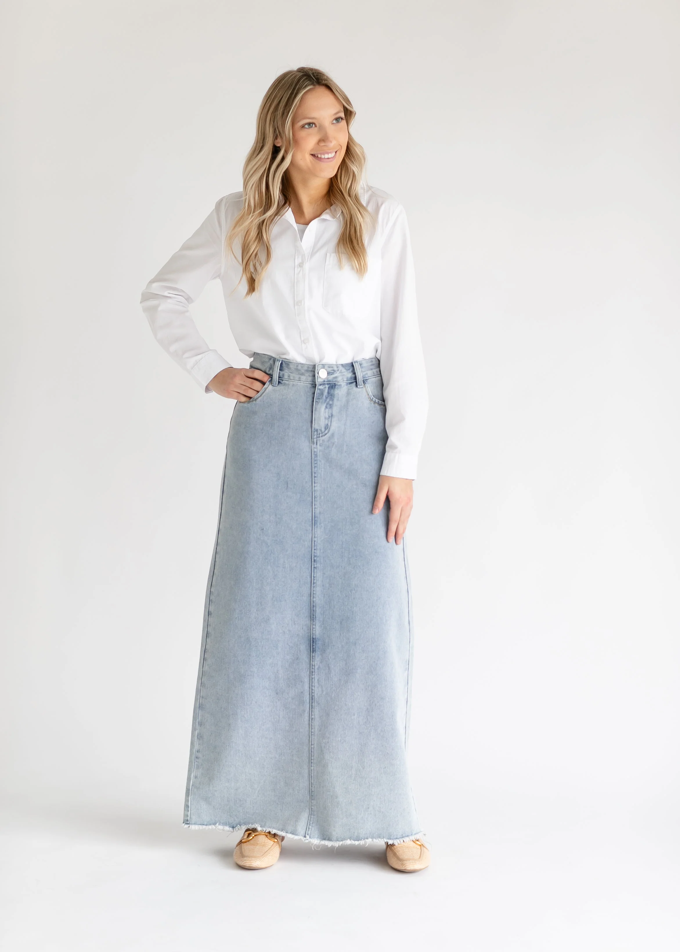 Elisha Light Wash Long Denim Skirt - FINAL SALE